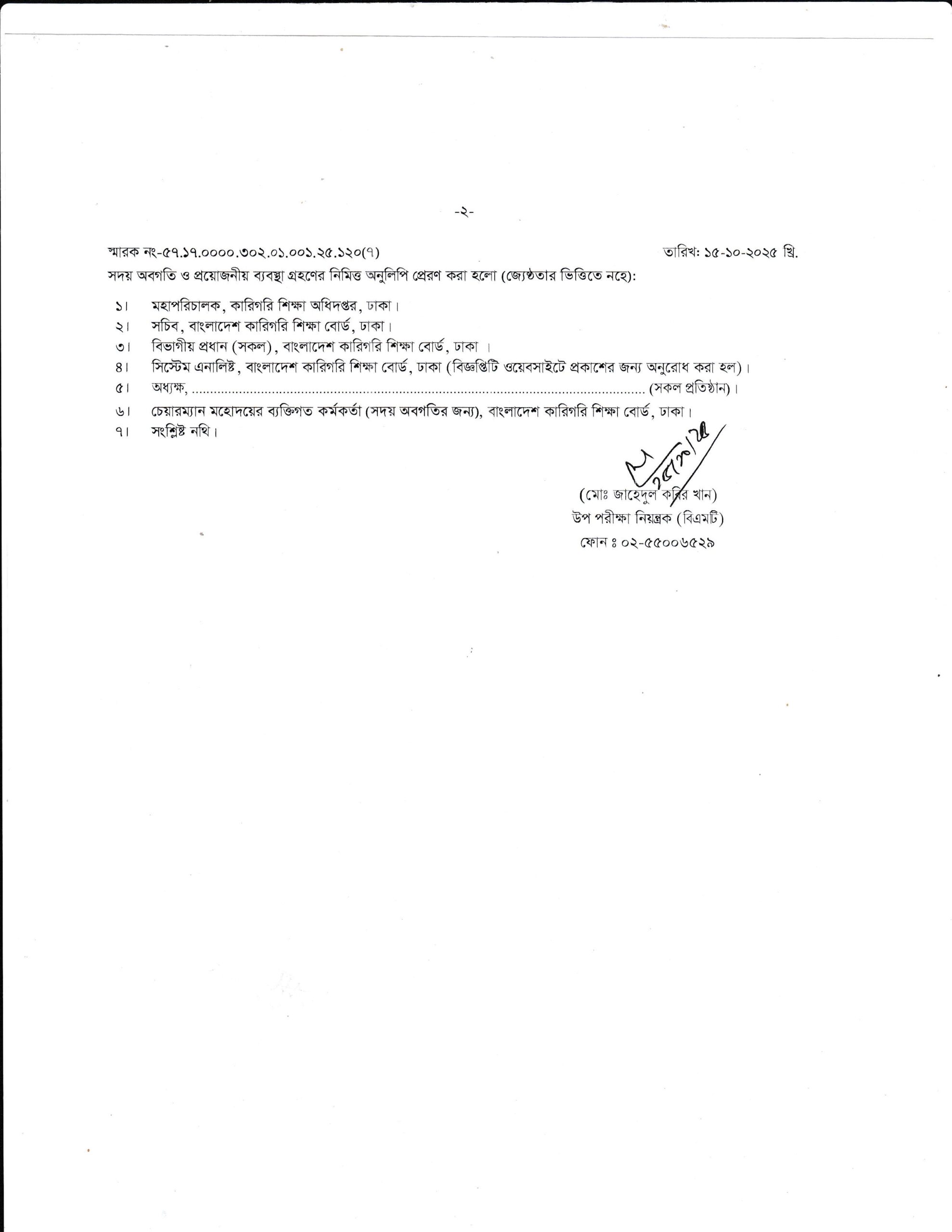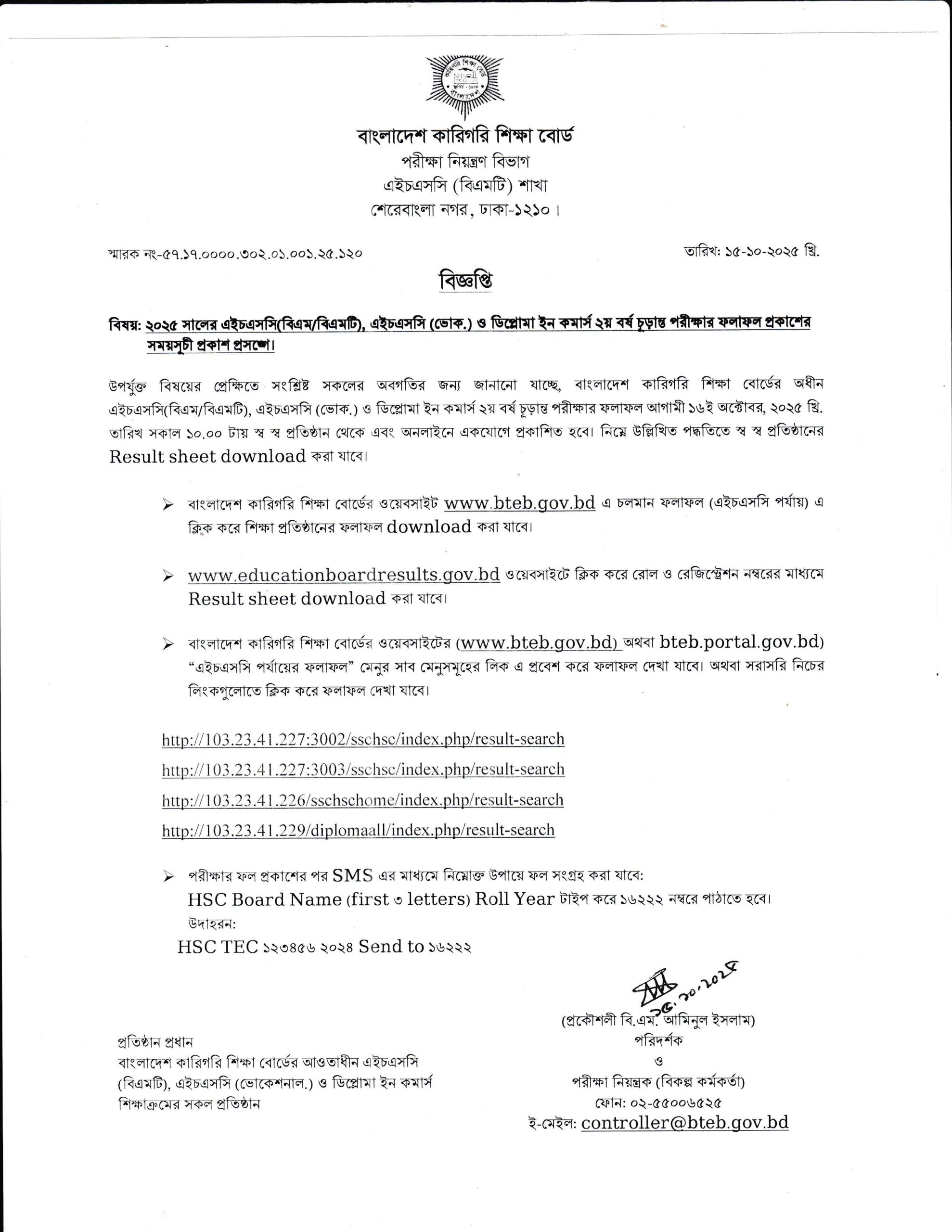 ২০২৫ সালের এইচএসসি সমমান (বিএম-বিএমটি), এইচএসসি (ভোক.) ও ডিপ্লোমা ইন কমার্স ২য় বর্ষ চূড়ান্ত পরীক্ষার ফলাফল প্রকাশ বিজ্ঞপ্তি