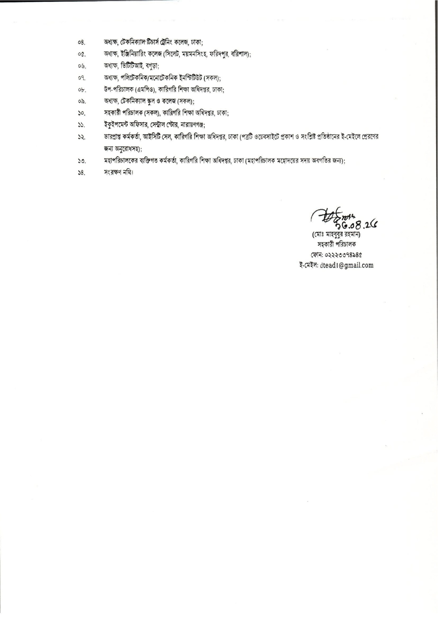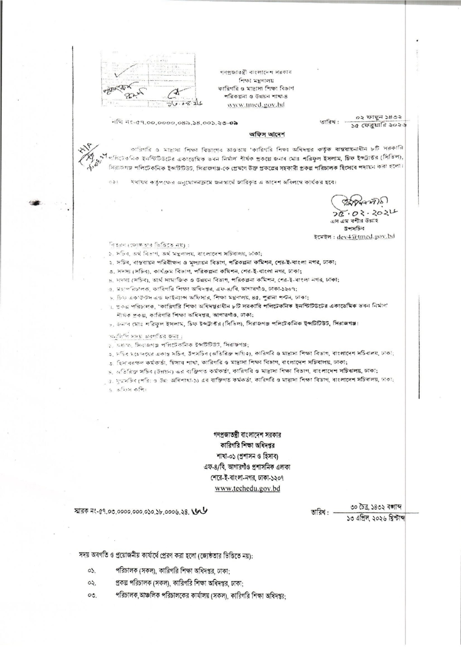 বদলিতে পদায়নের প্রজ্ঞাপন (২ জন, পলিটেকনিক)